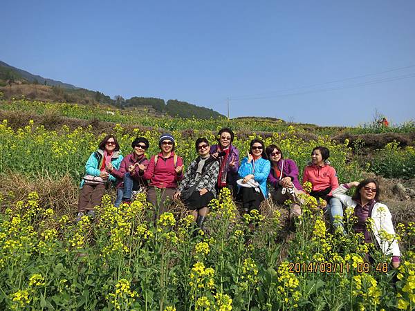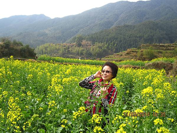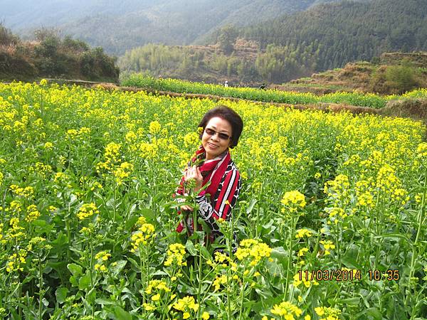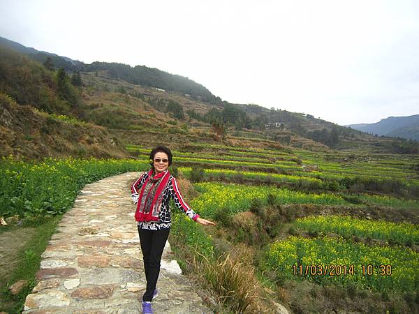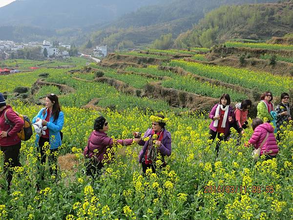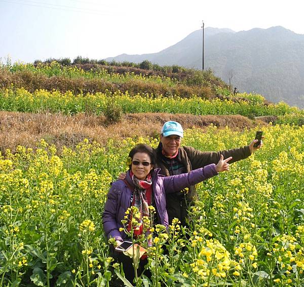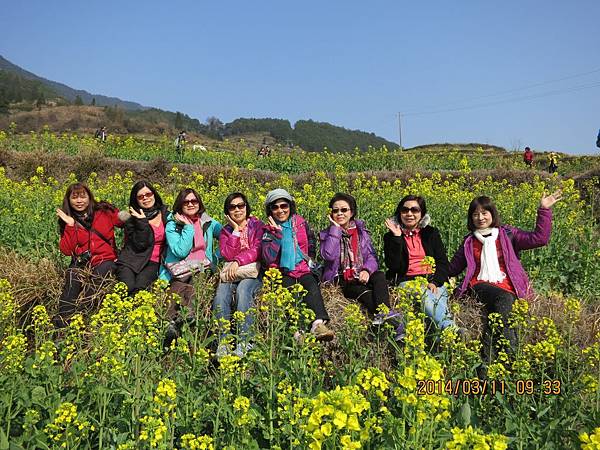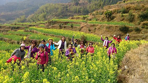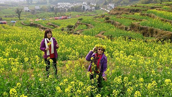從照片中可以看出姊妹們愛花的狂熱、頭戴油菜花編織的花環在花海中盡情展現嫵媚與嬌柔、東邊拍完拍西邊、在梯田上下左右奔跑尋找花開得最燦爛的地方。唯一可惜的是我們來早了一些、梯田裡的油菜花只開了八成、但是已經很耀眼了、若盛開時、那金閃閃的光芒恐怕會讓您睜不開雙眼呢!笑芳教我們摘最嫩的油菜莖、剝了外皮往嘴裡送、嘩!一股清、脆、甜的滋味真是可口極了!不愧是廣東人、最懂好料。