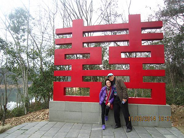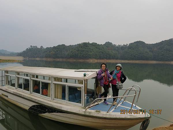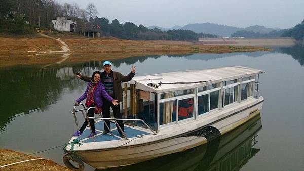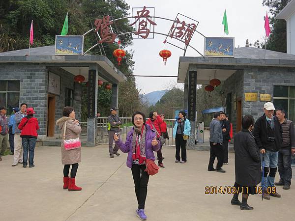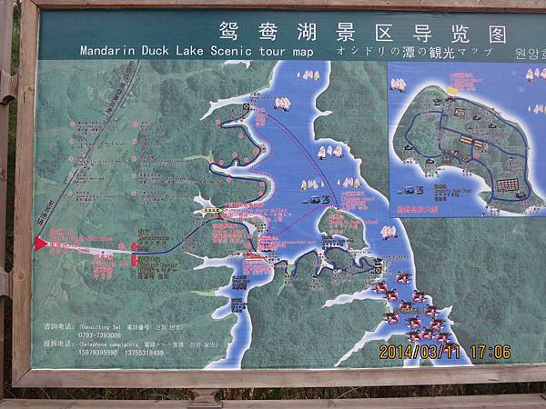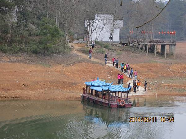 今天的最後一個行程是位於婺源西部的鴛鴦湖風景區。抵達園區入口處後再換乘電瓶車(每人RMB5元) 前往湖畔。鴛鴦湖原名大塘塢水庫、因周圍生態環境良好、吸引了大批鴛鴦在此棲息、故更名為鴛鴦湖。我們來造訪時正逢枯水期、天色也漸晚、湖面上不見有鴛鴦、只好在湖畔隨意賞景。部份團友跟著阿鵬去搭船遊湖、特地繞到鴛鴦入夜時棲息的地方、驚動了千對以上的鴛鴦齊飛入湖中、場面非常壯觀、數量之多實數少見。