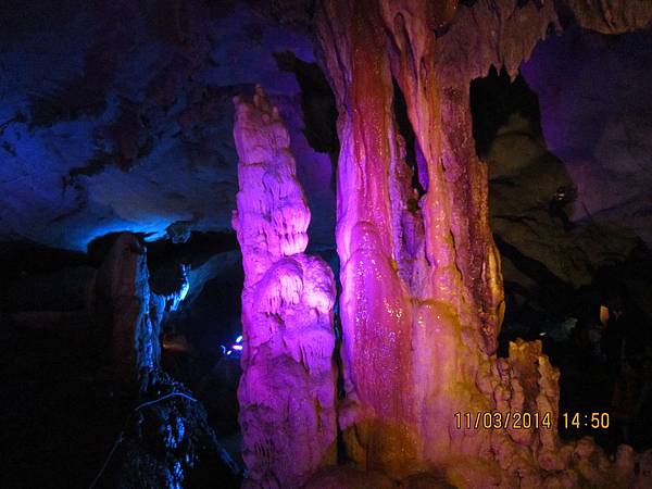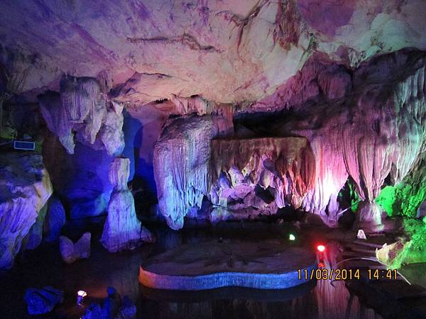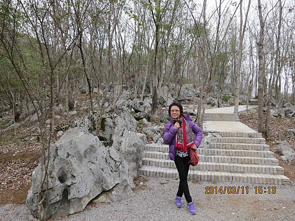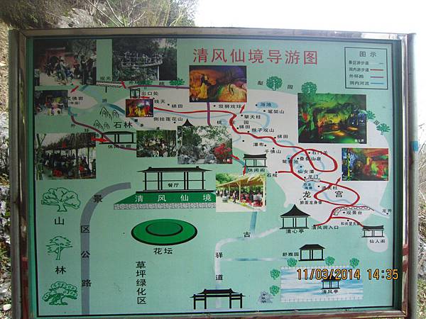 清風洞和一般喀斯特溶洞大同小異、洞中鐘乳石和石筍千姿百態、可惜溶洞不大、人工化太多、看過太多著名溶洞的我們實在對它有點失望、於是參觀草草結束、出洞後穿過一大片乾巴巴的樹林後才能回到車上休息、時已是下午3:35分。
