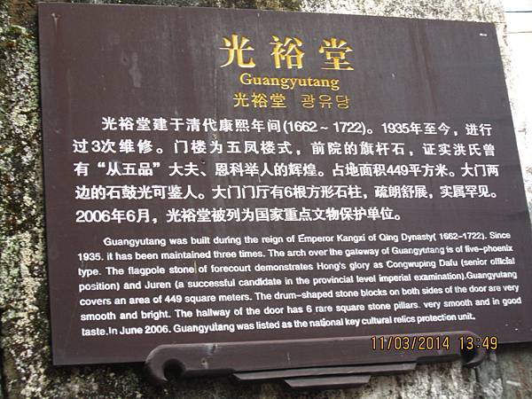 我們11:00點離開婺源驅車前往古色古香的洪鑫園吃午餐、茶足飯飽後於12:35分出發前往下一個景點~洪村、車程約需40分鐘。