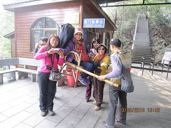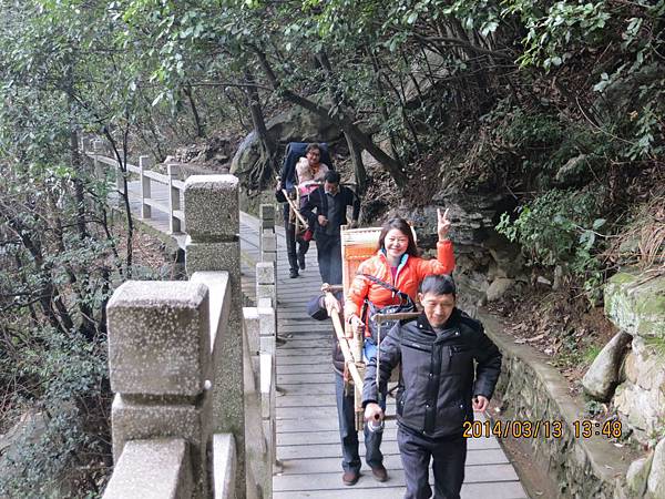 明薇和榮榮中途走不動了、只好坐滑竿