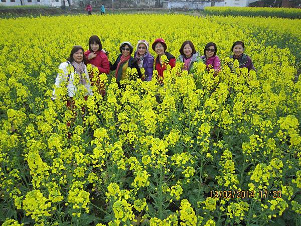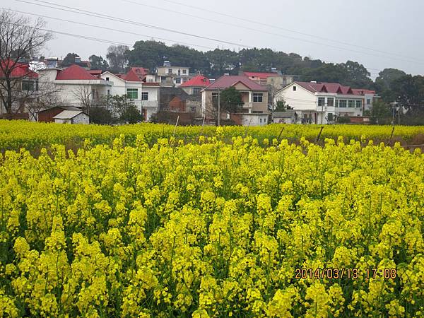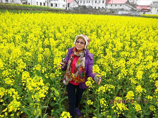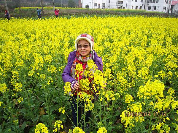 離開三疊泉後還有一段艱難的下坡長路要走、雖辛苦但值得。由於在盧山逗留的時間太長、影響了爬碧龍潭的行程、再說兩地景觀也大同小異、相較之下、盧山顯得壯觀多了、因此决定只在碧龍潭山下逛一逛即可。到酒店途中路經一小村莊、田裡油菜花盛開、黄澄澄一片、趙師傅特地停車讓大夥兒下車拍照。長得比人還高的油菜花太吸睛了、鑽進花海中、身上沾滿了金黄色花粉、大夥兒仍是樂此不疲、也終於滿足了對油菜花的愛戀。