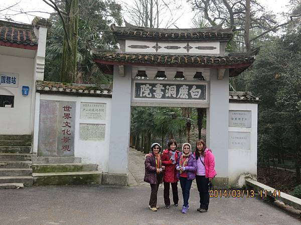 白鹿洞書院享有〝海內第一書院〞之譽、始建於公元940年、乃中國四大書院之一。位於盧山五老峰下、佔地3000多畝。這裡環境清幽、古木参天、蛙吟鳥啼、是個適合靜修的好地方。洛陽學者李渤在此隱居讀書、並飼養了一頭白鹿做伴、此地遂名白鹿洞。後來宋代理學家朱熹重建書院、並親自在此講學、他在此提出的教育思想、在中國教育史上有非常重要的影響。白鹿洞書院因此而聞名全國。在解說員帶領下、我們逐步參觀了這座一千多年的古書院、也看到了書院飼養的四頭白鹿、在外頭還真沒見過呢!