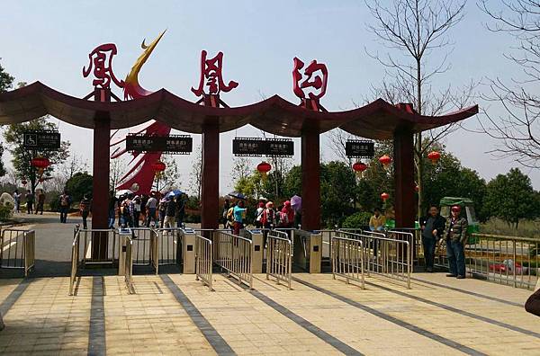 園區的範圍廣大、我們坐電瓶車參觀、有美景之處便下車。景區擁有五千多畝景觀花木、三千多畝茶園、七百畝各式果園和二百多畝桑園、不管任何季節來都有花果飄香和山花爛漫等豐富的自然生態景觀。這裡還有一片600畝的櫻花林、在櫻花盛開季節時、不難想像那花海有多醉人了。此時正是百花齊放的春季、我們幾乎被梅花和美麗的辛夷給淹沒了。園區有好幾處都遍植辛夷、當地人稱它為玉蘭、整條道路兩側花海一片、非常壯觀。再往下走是滿坑滿谷的茶園景致、這片沿著山坡栽植的翠綠茶海、連綿起伏、阡陌縱橫、宛如遊龍、一望無垠、彷彿連向天際。登上園區觀景台上、360度視野、鳳凰溝遠近春色盡入眼簾、讓人目不暇給。