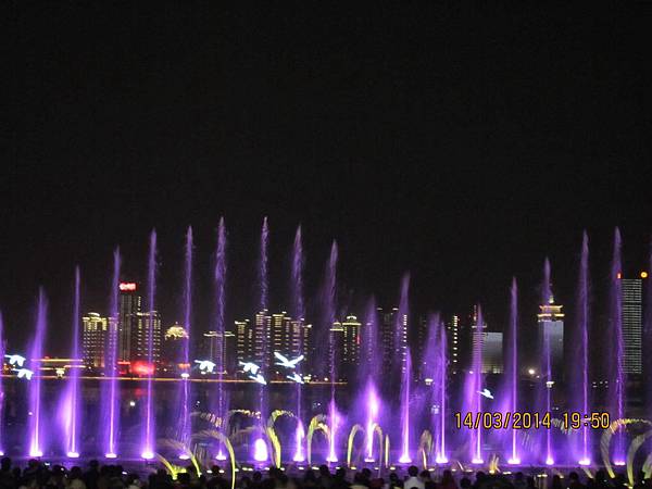 秋水廣場是一座以噴泉水舞為主題的大型廣場、每天晚上7:30分都有水舞表演。其實水舞我們也看多了、這裡唯一特別的是噴出的水柱最高達130公尺、算是我所看過最高的了。