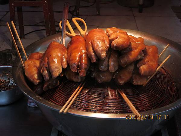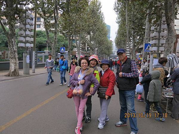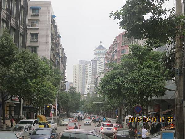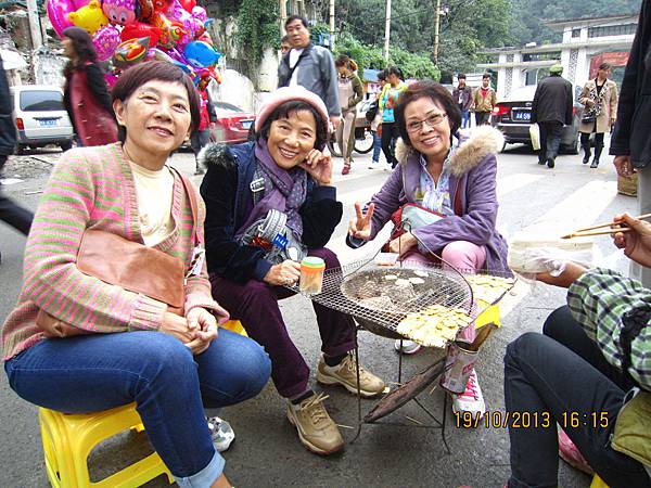我們於4:30分離開黔靈公園、徒步穿越馬路前往集合地點、馬路上行人熙來攘往、賣水果和小吃的攤位非常多、當地的小吃也千奇百怪、試著嚐了一些、味道差強人意、還是台灣小吃好、健康又衛生。
