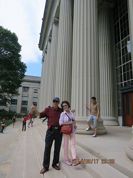 我們於11:00點離開轉往另一所同樣知名的麻省理工學院(MIT)。位於麻州的劍橋市查爾斯河畔、由著名自然科學家威廉·巴頓·羅傑斯創立、是當今世界上最富盛名的理工科大學。MIT 創立於1861年、主要是為了因應當時美國工業化需求、希望建立一座能快速促進科學與科技發展的教育機構培育人材。由古至今、MIT一直是許多科技先驅的搖籃、無論是在美國還是全世界都有非常重要的影響力、培養了眾多對世界產生重大影響的人士、是全球高科技和高等研究的先驅領導大學。麻省理工學院的自然及工程科學在世界上享有極佳的聲譽、其管理學、經濟學、哲學、政治學、語言學也同樣優秀。知名校友有建築師貝聿銘、台積電董事長張忠謀……等。因為麻省理工學院很有錢、家庭年收入低於75,000美元的學生一律免學費、所以麻省理工學院經常被喻為世界上最有錢也最慷慨的大學。