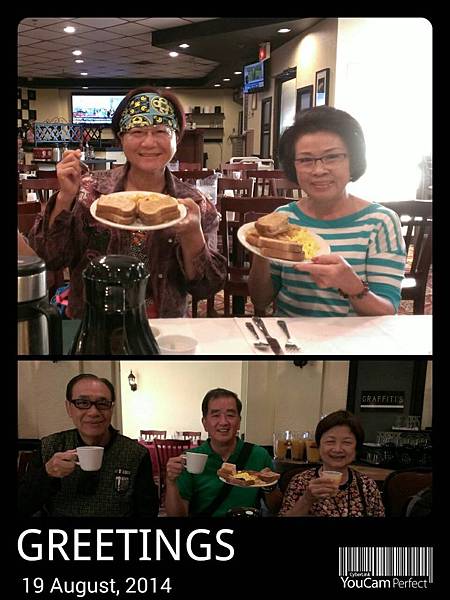 離開千島湖後、咱們的車子往南走直奔300多公里外的下一站~加拿大最大的都市多倫多。晚餐在China Town 翠濠庭享用七菜一湯中式料理、夜宿Crown Plaza Hotel。二姑姑移民多倫多20多年、晚上外甥特來接我們到他家去團聚。二姑姑在孝順兒孫照顧下、一切都很好、身為么弟的老公常掛念著二姐、見面後終於放心了、姐弟情深、看得我不禁紅了眼框……