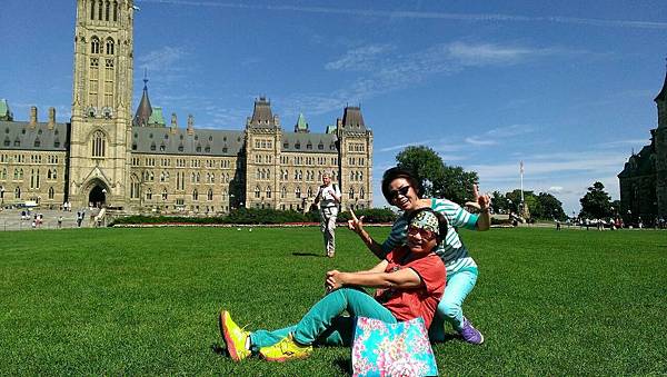 國會大厦的前面廣場一片綠油油、着紅衣戴黑色皮帽的衛兵站在廣場上任由遊客與他們合照、那應該也算是此處的風景之一吧!每天早上10:00點、廣場前還會舉行衛兵交接儀式、可惜我們來晚了沒能趕上。其實我們現在看到的國會大厦是1922年重建的、最初的建築物建於1867年但毁於大火。