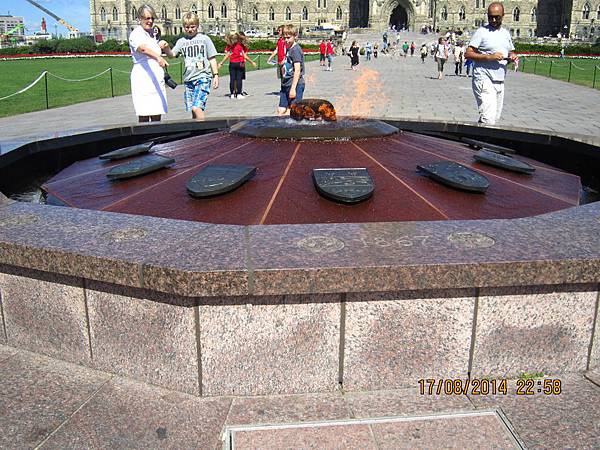 大厦前庭中央有個百年火炬、是為了紀念建國百年於1967年所造、至今仍在持續燃燒著永不熄滅。沿著里多運河還有更多的重要建築、如聯邦廣場和廣場中央的國內戰爭紀念碑、市政廳、造幣廠、歷史博物館、國立自然博物館、文明博物館、聖母大教堂、聯邦火車站等等、可惜我們都只是路過、但有驚鴻一瞥的感覺。