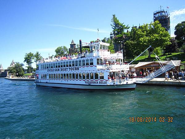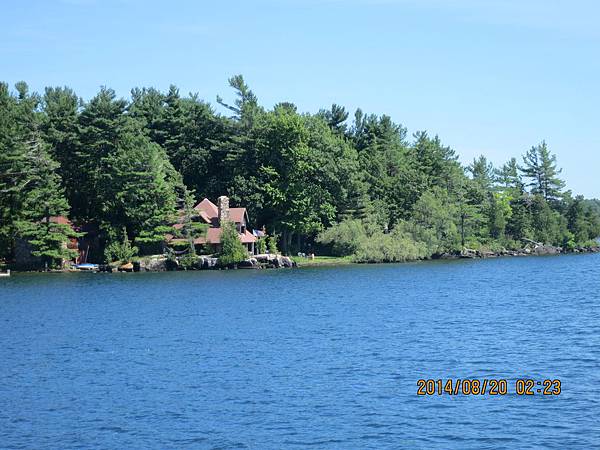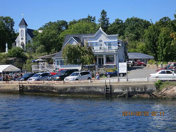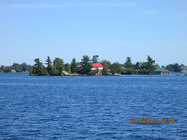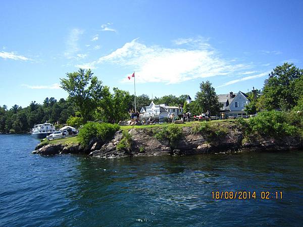 從渥太華到京士頓的千島湖景區有150公里、下午1:20分抵達遊湖碼頭Rockport、在湖邊餐廳吃簡單的buffet再搭乘2:00的船遊美麗的千島湖。京士頓位於安大略湖的東邊、是個人口只有6萬多人的小城鎮、由於千島湖的觀光據點越來越廣為人知、也直接帶動了這個小城鎮。