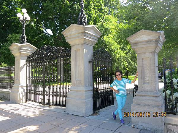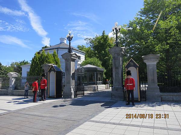 下一站、我們來到加拿大總督府、坐落在國會山莊不遠的洛克立弗公園南邊。寬敝又綠意盎然的美麗庭園可任由遊客造訪、從大門進入後、沿著碎石路直走一段便可以到總督官邸去泡咖啡、可見外國元首是多麽親民了!團體客甚至散客都可以預約參觀內部、可惜我們連靠近總督官邸的時間都沒有。