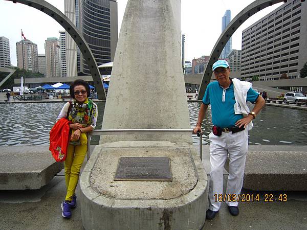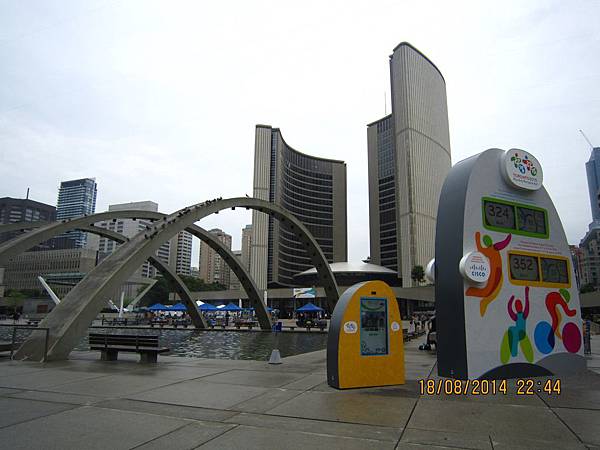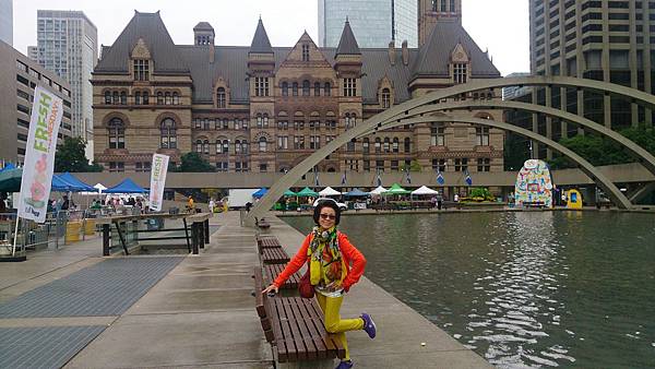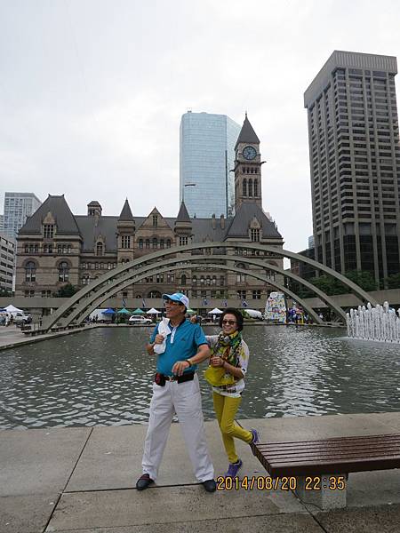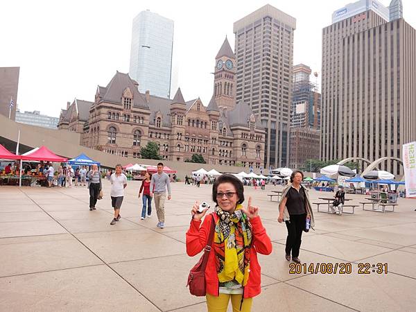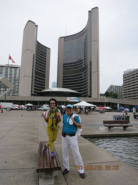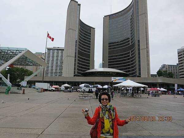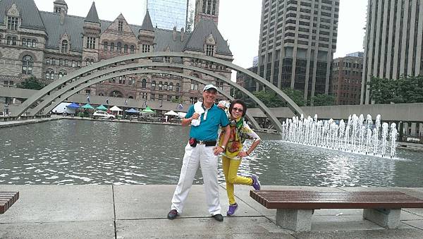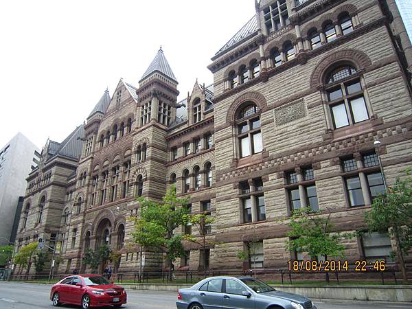 車行一小時抵達市區觀光的首站~多倫多新舊市政廳(New & Old City Hall)。舊市政廳建於距今125年前、大樓於1889年動工、1899年落成、是一棟古典羅馬風格的建築、大樓竣工時不但是當時市內最大的地標、也是北美最大的市政建築、於1984年列入加拿大法定國家古蹟。