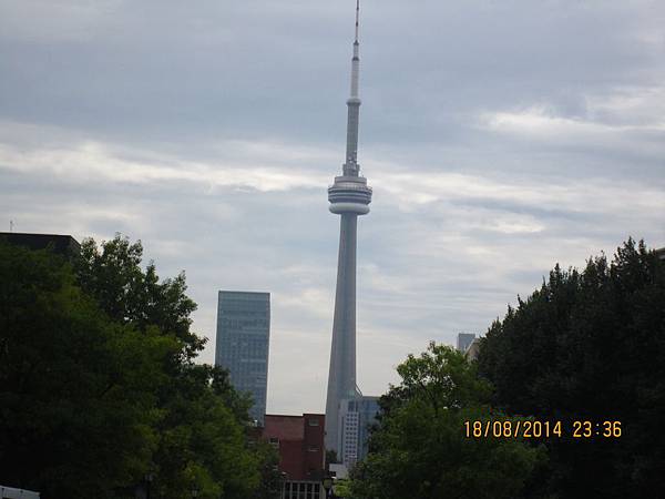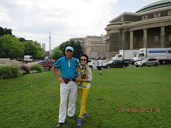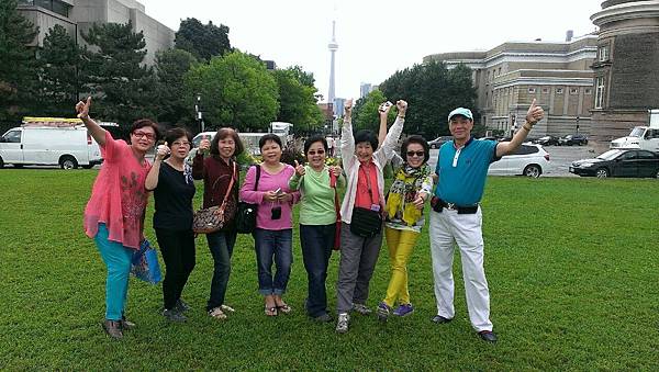 下一站來到加拿大排名第一(世界排名25)的名門大學~多倫多大學。古老的學院創立於1827年、最初為國王的書院、以醫學系為其強項科系之一、後來學院的藥學部於1921年發現了可用來治療糖尿病的胰島素和幹細胞後、從此一舉成名地登上了世界舞台。多倫多大學也是獲得諾貝爾獎最多的加拿大大學、學校資源豐富、設施齊全、共有67座圖書館、藏書量1280萬冊、規模僅次於美國的哈佛大學和耶魯大學。由於不開放參觀、我們只能隔著校園章坪遠觀這棟百年建築。從多倫多大學前也可遠眺高聳的西恩塔(CN Tower)。