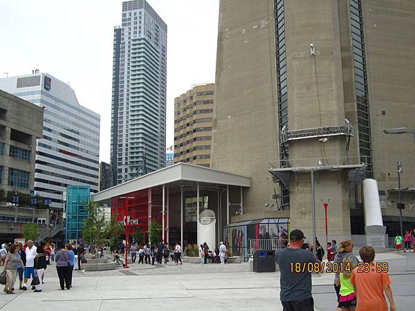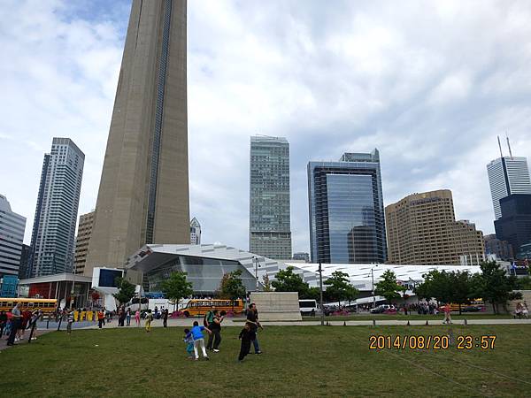 緊鄰西恩塔左邊的是多倫多水族館、右邊是羅傑斯中心(Rogers Centre) 、是史上第一座巨蛋型體育館、屋頂可以打開、開關只需20分鐘、住在鄰近大樓及飯店的人也可直接從家中陽台觀賞球賽。