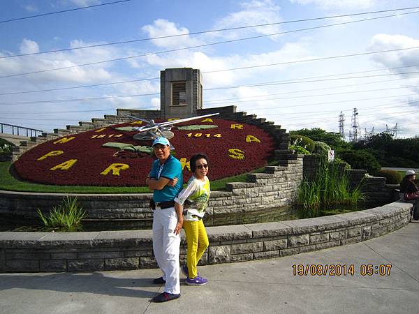 五點左右看到傳說中有2萬5千多株鮮花、萬紫千紅般地點綴著的世界最大的花鐘、下車一看、花呢?沒花!原本還很期待、沒想到好像被潑了一桶冷水、哪有花?陽明山的花鐘還比它好看呢!還是去吃飯吧!
