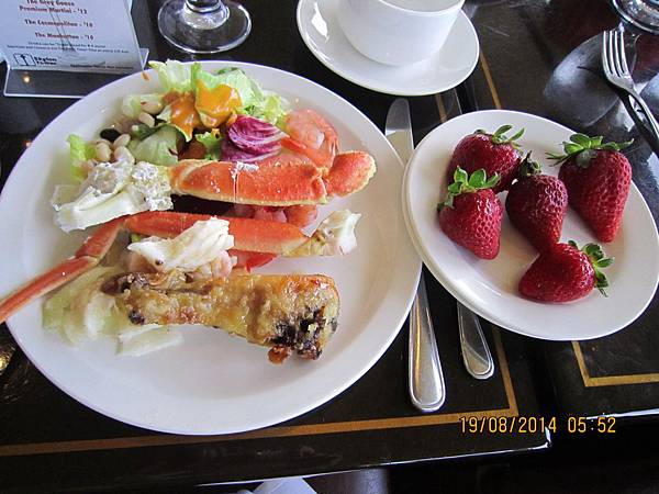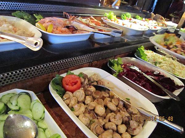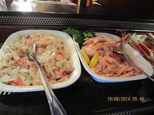 來加拿大三天了、每天的天氣都好得不得了、白天溫度平均25度、早晚較涼、溫差大約在8度左右、濕度剛剛好、所以感覺很舒服、偶而一陣微風吹送、那就更舒暢了。今天7:30分晨喚、Crown Plaza Hotel離機場很近、在室外可聽到飛機起降的吵雜聲、再說飯店外也沒啥好風景、咱們就留在餐廳悠閒地吃早餐。美式早餐連吃4天了、完全沒變換過、千遍一律的炒蛋、炸馬鈴薯、炸香腸、咖啡和preserved 果汁、都不想拍照了、不過除了我以外、大家好像都挺愛吃的。