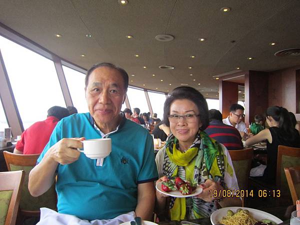 塔頂上還有一層最高233公尺的觀景台、據說視野可達130公里以外、但領隊沒有安排、因為要另收費的。我們用餐的餐廳上方還有一個更高檔的旋轉餐廳、當然用餐價格與環境都比我們更勝一籌。