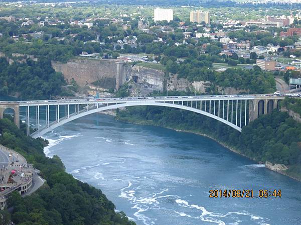 尼加拉河上的彩虹橋、橋中央是美加兩國的國界