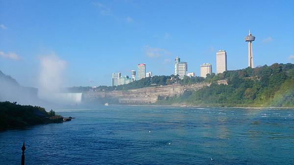 拉車1.5個小時中、有人很快就入睡了、俗話說肚子飽了、眼皮就鬆了、吃飽就想睡的人多半是吃太飽囉!領隊此時講述加拿大著名的楓糖漿和冰酒的來源和製作過程、我也注意到車窗外是一大片連綿數十公里的葡萄園、非常壯觀、原來這裡是安大略省唯一擁有適合葡萄栽培的土壤、所以葡萄園和酒莊幾乎都集中在這一區。4:00點抵達湖邊小鎮、一個離尼加拉瀑布北邊20公里的小鎮、我們離尼加拉瀑布越來越近了!
