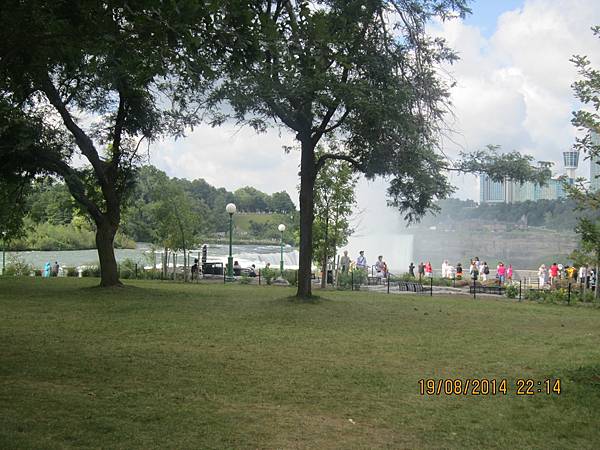 瀑布的周圍被規劃為維多利亞女王公園、由於公園的高度與瀑布上的水面相近、遊客可以沿著公園步道由瀑布上游往下游方向走、就可以看到奔流進瀑布潭裡的磅礡水勢、也同時將整個尼加拉瀑布一起盡收眼底、那種震撼力會讓你一輩子難忘。