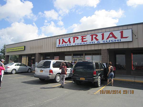 返回遊客中心、在等車的空檔、大家又忙著收集紀念品了、我又買了3個杯子。接著是午餐時間、在Imperial吃西式自助餐。餐廳的周圍有很多商店、吃飽後逛逛可助消化、因為接下來我們要前往賓州的哈里斯堡、路程有900公里、也是旅行以來拉車最遠最久的一次。