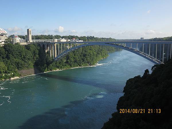 想體驗一瀉千里的磅礡怒潮、那一定不能錯過尼加拉瀑布!「尼加拉瀑布」(Niagara Falls)最常被誤為「尼加拉瓜瀑布」、它的真正名字是尼加拉瀑布才是正確的。尼加拉瀑布被美國境內的山羊島(Goat Island)分隔成兩部份、由於瀑布跨越加拿大與美國兩國、在尼加拉河上有一座邊境橋、在豔陽高照的晴空、瀑布的水氣經陽光反射、會映出一道道彩虹、因此被命名為彩虹橋(Rainbow Bridge)、橋的中央便是兩國的分界處、也是觀賞整個瀑布的絕佳位置。