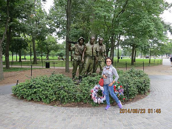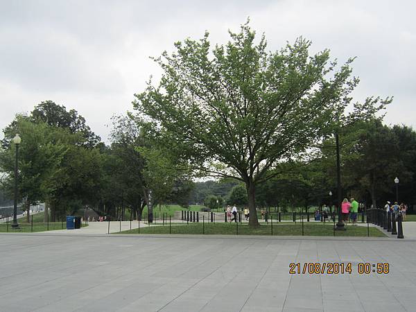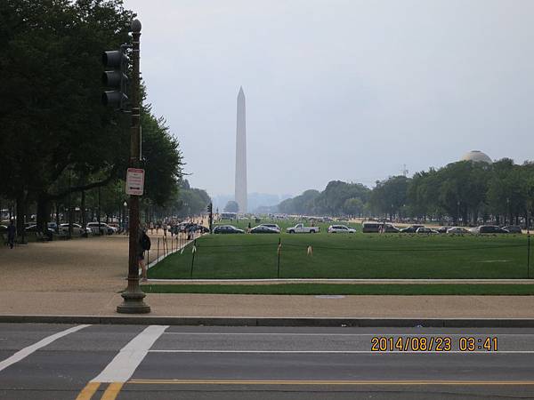 早上11:10分抵達華盛頓、參觀景點之前先在唐朝餐廳解決了中餐、茶足飯飽後信步在附近逛逛、看看街巷裡的大樹及碧綠的草坪、感到身心舒暢。我發現美加兩國有個共同點;只要是有草坪的地方、不管草坪的大小、都會修剪得很整齊、對環境的維護做得非常好、這一點值得我們仿傚。