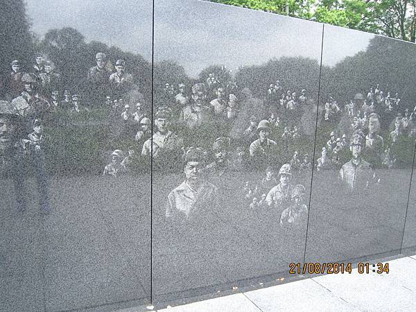 在映像池左右兩側還有越戰紀念碑、韓戰紀念碑、和二次世界大戰紀念碑。韓戰紀念碑展示一群士兵的雕像走向美國國旗、而越戰紀念碑則是由兩道黑色花崗岩紀念牆組合而成、每道牆長約76公尺、兩道牆相交組成了V字形、上面刻有超過五萬名在越戰中陣亡、失蹤的美軍名單;在參觀時還會看到有人獻花於紀念碑之前。