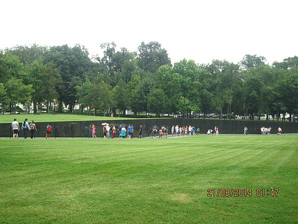 兩面黑色花岡岩越戰紀念碑牆、每面長76公尺