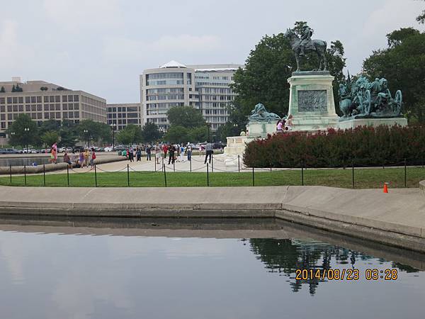 在林肯紀念堂和華盛頓紀念碑之間隔著一個長形人工水池~映像池、從池面可以清晰反映出紀念碑的全貌、兩者相映成趣、真不愧是一項巧妙的設計。沿著映像池漫步、發現池邊有不少的水鴨、或飛翔、或戲水或在草坪上憩息、美中不足的是它們的排泄物汚染了映像池兩岸、行走時要小心了。