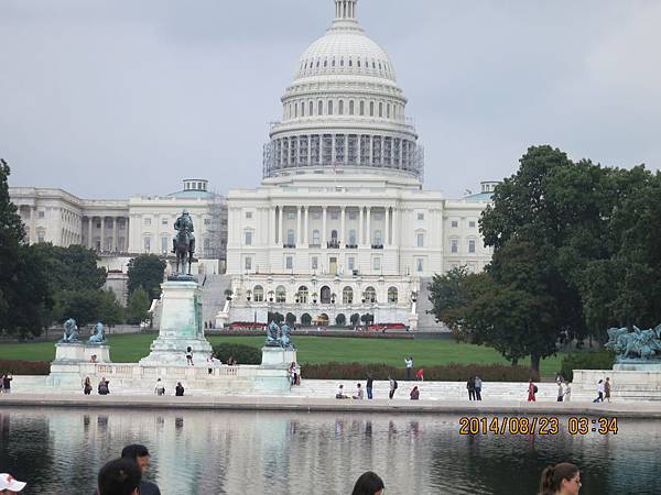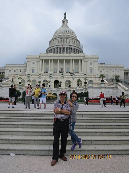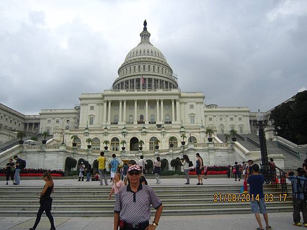 昨天晚上夜宿賓州的哈里斯堡、今天早上8:30分開始要拉車3小時前往美國首都華盛頓、接著是參觀國會山莊和其他著名景點。首都華盛頓、全名為華盛頓哥倫比亞特區、(Washington D.C.)、是為了紀念美國開國元勳喬治.華盛頓和發現美洲新大陸的哥倫布而命名的。華盛頓位於馬里蘭州和維吉尼亞州之間的波多馬克河畔、面積 180萬平方公里、人口大約有60萬人。美國聯邦政府正式成立於1789年、喬治.華盛頓當選為首任總統、並選定南北分界線的波多馬克河畔長寬各16公里的地方建都。負責首都整體規劃和設計的是一位法國工程師、首都尚未建成、華盛頓便於1799年逝世。為了紀念他、新都便命名為華盛頓、又為了避免與美西的「華盛頓州」混淆,所以加上D.C.也就是District of Columbia(哥倫比亞特區)的簡稱。