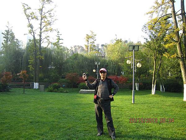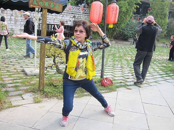 園區內還有很多花卉及名貴盆栽、花圃和綠地、當地人在草地上打羽毛球、跳舞、練太極拳等、我一時技癢也隨著眾人練42式太極拳法、純屬好玩。