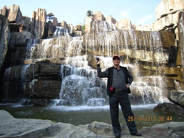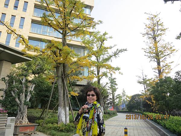 今晨起了個大早、因為要找時間好好逛一下「中天凱悅大酒店」美麗的花園區。到貴州的第一天也是住這兒、當天時間太倉促、沒能仔細看清楚這酒店的週遭竟是如此寬廣和漂亮、今天再不逛逛就沒機會了!步出酒店後門、清新的空氣迎面而來、踩在滿是露水的草地上、眼前紅的是楓葉、黄的是銀杏、還有一整片鋪天蓋地的綠、看得整個心都飛躍起來。暖和的冬陽照耀在銀杏樹上、那一抹耀眼的金黄色亮得刺眼!瀑布區流水潺潺、早起的鳥兒已在草地上覓食了。一日之計在於晨、早上走完最後一個行程後、下午要回家囉!心裡雖有萬般難捨、但心繫家人和Bobby、家終究是最溫暖的避風港。