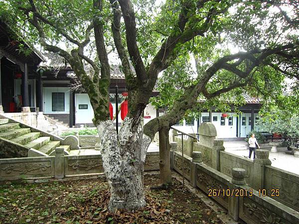 拾級而上、逐步參觀園內一景一物、在游廊及庭院中、我忙著尋找那兩株三百多年的老桂花樹。穿過徊廊、越過亭台、沿路問人才終於看到那棵枝葉繁茂的老樹、可惜只剩下一株、另一株已枯死多年了。