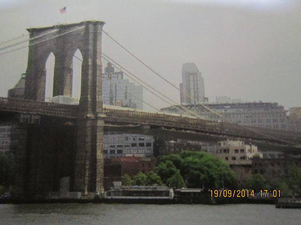 我們的車子從布魯克林橋旁經過、匆匆一瞥、但卻留下深刻印象。這是一座橫跨曼哈頓島與布魯克林區的吊橋、不但是世界最長、也是首座以鋼材建造的橋樑。它高聳的兩座一哥德式橋塔更是當時西方世界中最高的建築。 這座橋改變了兩個行政區間的往來關係與速度。站立橋上還可欣賞四周的美景、是一座極富歷史價值的著名吊橋。