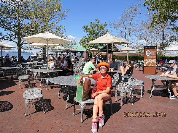 我們搭11:30分渡輪返回曼哈頓島、當然也趁候船的空檔時快速地買了些紀念品~有自由女神像的馬克杯、女神雕像和兒女的Tshirt。接著下來要好好地逛一逛曼哈頓了!