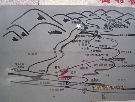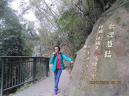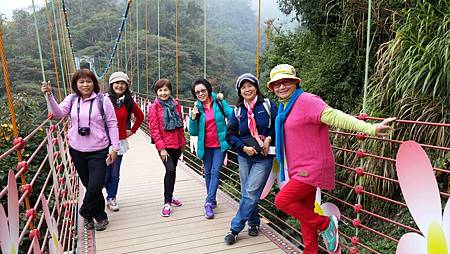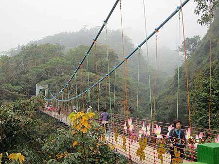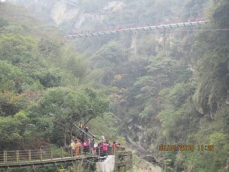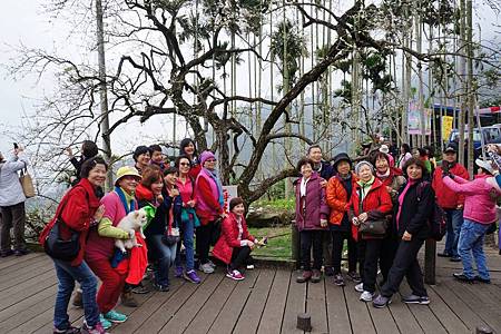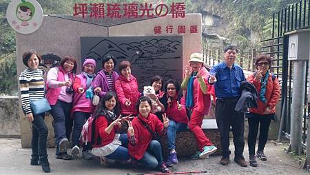 今天的晨喚是6:30分、通常我都會比晨喚時間早起十分鐘把自己和行李都整理好、乘早餐前利用15分鐘時間踏出戶外走走或曬曬太陽。由於早上要參觀的琉璃光之橋是5個月前新登場的景點、遊客較多、為避免擁擠、趙領隊宣佈要早一些出發。我們7:30分離開帝綸飯店、抵達位於信義鄉愛國村南側的坪瀨景點區正好8:00整。景區周邊還在整修中、車行不便、因此遊客都必需在附近的親水公園停車、購票後再排隊搭接駁車進入園區。