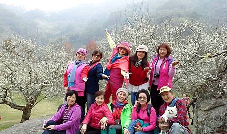 喜歡賞花拍照的我們在梅園樂不思蜀、若不是趙領隊再三催促、恐怕今晚要睡在梅樹下了。下午4:00點開始北返、經苗栗縣公館蘭庭餐廳晚餐、賢妻良母們熱烈採購餐廳的人氣料理~芋頭糕和香氣四溢的芝麻包。回到台北永寧捷運站、大家大包小包地不辭辛苦只為了讓親愛的家人也能分享到美味和喜悅。兩天的旅遊至此畫下完美的句點、要感謝葉爸賢伉儷的籌劃和招集、感謝趙領隊帶隊辛苦、感謝拍照的多位姐妹(名字就不寫了、免得掛一漏萬)和全體隊友、期待下一次再同樂。