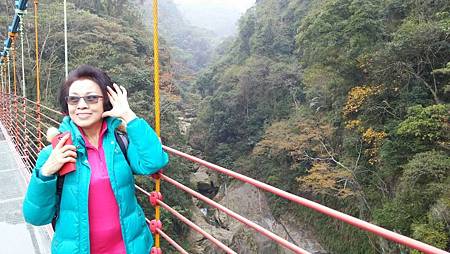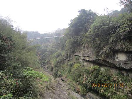 南投信義鄉的琉璃光之橋是將原本的福德吊橋重新設計、加上視野透明的玻璃橋面後、打造出的新景點。新的吊橋不僅部份橋面透明、且與腳下的溪谷之間落差約60公尺、走在橋上往下看、可以感受行走在懸置凌空中的驚撼、確實有點腿軟、膽子小的人走得膽戰心驚、甚至需要有人攙扶才敢走過。吊橋橫跨坪瀨溪谷、天然巨石峭壁加上靜謐優雅的溪谷、周邊又有鬼斧神工般的一線天、飛來石、水簾洞及渾然天成的燕子崖石壁奇觀可供遊客駐足觀賞、是全國難能尋覓的優質景點。整個景區經過整合後命名為〔琉璃光之橋健行園區〕、往返時間大約要2小時、但我們卻足足花了3.5小時、真是玩得太瘋了!