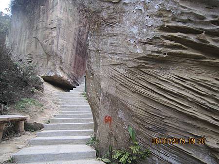 來到坪瀨除了走琉璃光之橋、健行園區內也有許多奇景如200年老芒果樹、人面石、梅園、葡萄園、燕子崖、大石壁、坪瀨奇石、一線天、飛來石等等。過吊橋後、循右側蜿蜒的陡斜石階而上、轉個彎便可看到一大片的平坦巨石、巨石上有石階通往一線天、這裡便是坪瀨奇石。 令人不禁讚嘆的是、這片陡峭石壁之間形成的一線天上方還卡著一顆經年累月屹立不搖的菱形飛來石、實屬少見。一線天岩壁間的通道狹窄、一次僅容一人通行、也有摸乳巷之稱、過了一線天前方是一片平台、這兒有座小土地公廟、假日也有小販在此設攤。