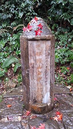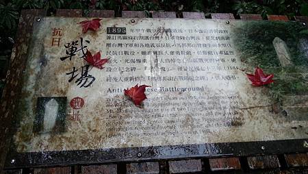 隨著步道沿途殘存的舊石階、走到標高1000多公尺之處是「馬那邦山古戰場紀念碑」、令人憶想起百年前這裡曾是戰鼓喧嚷的征戰之地。泰雅族人的足跡、日本軍人的戰靴、都曾踩過這古樸滄桑的石階路。泰雅族人奮勇抗日事件、雙方死傷慘重、那可歌可泣的惨痛歷史的確讓人不堪回首、如今這裡只剩下一座冷冰冰的紀念碑了、加上小雨淅瀝瀝的情境、頓時覺得周遭有點陰沈沈的感覺、還是趕緊離開吧!