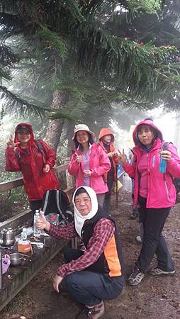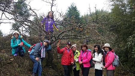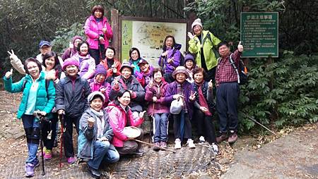 103/12/19清晨7:30分自東三門出發、上中山高直奔苗栗大湖鄉、在大湖酒莊稍做休息後繼續來到大湖與泰安鄉交界處的泰雅族瓦崗部落、從這裡再換接駁車前往馬那邦山上湖登山口(換接駁車直接到登山口可省去不少時間和體力、否則那一段到登山口的柏油路至少要走40分鐘)。大夥兒在登山口整裝待發、領隊分發給每人兩個飯團、加上葉爸的蔥香包、午餐就靠這些了。今天天氣不理想、但有機會看到雲海、拍了團體照、咱們出發了。