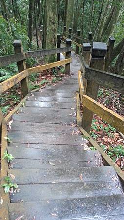時間不早、我們該下山了、下坡的泥土路因雨而變得難行、佈滿青苔的木階梯更是濕滑、為了怕滑倒、大家亦步亦趨、互相提醒、但是意外還是發生了!朱爺滑倒、左手骨折、看他痛苦地跌坐在地上許久、我們都捏了一把冷汗、做了緊急措施後、再慢慢地護送他下山就醫。回到停車場、天色已晚、在鶴山餐廳晚餐後北返、馬那邦山賞楓之旅雖有小缺憾、但不幸中有大幸、他日再有登山行程時、咱們都要有所警惕、處處多加小心謹慎、走路不看景、看景不走路、也希望朱爺傷勢能早日康復。