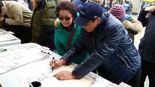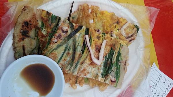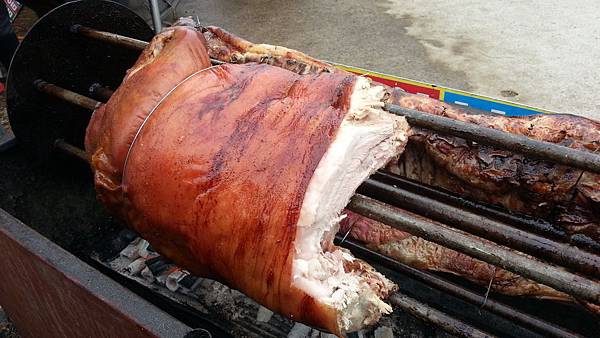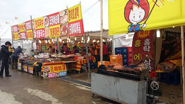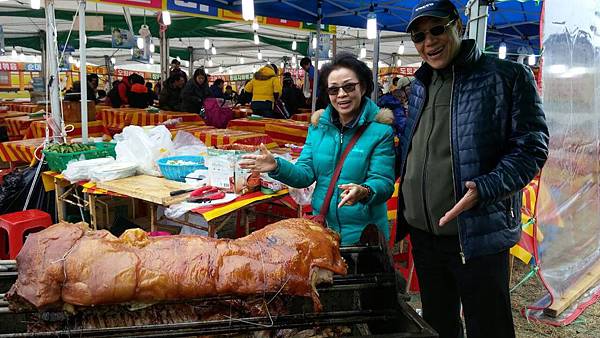 我們大約下午4:00點抵達會場,今天氣溫很低,大約只有3-4度,場地空曠風又大,真冷啊!先逛逛吧!再來就是解决吃的問題,會場很多美食攤都有試吃,一雙筷子滿場吃,看到香噴噴的燒烤全豬,食指大動,奈何溝通不良,最後只能點個海鮮煎餅就吃飽了!