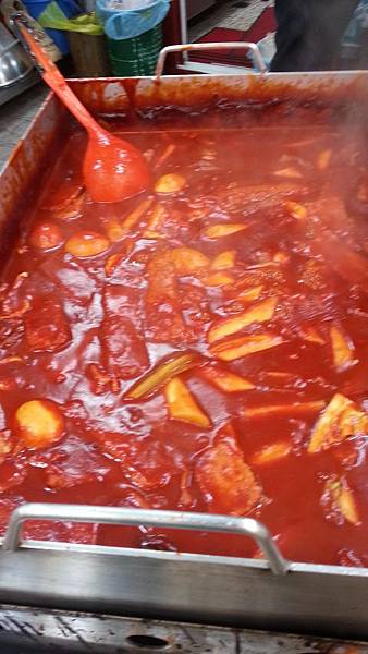 導遊發給每人零用錢五仟韓幣抵用卷,抵用券規定只能在東門市場消費,5千韓幣等於台幣一百多,除了買吃的還真不知道要花在哪呢!於是大夥兒走到熱食區尋找零嘴,韓式炒年糕、煎餃子、炒粟子,開開心心地把5千元吃進肚子裡去了。