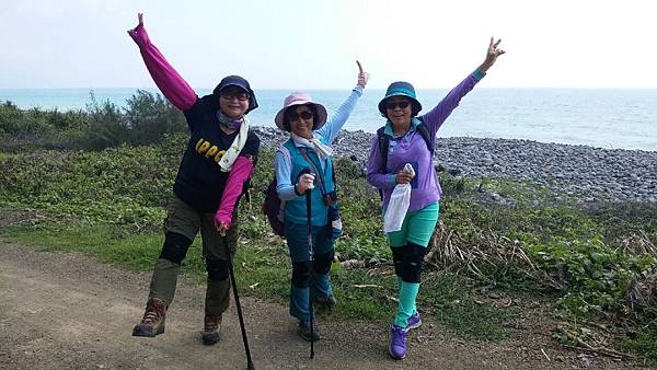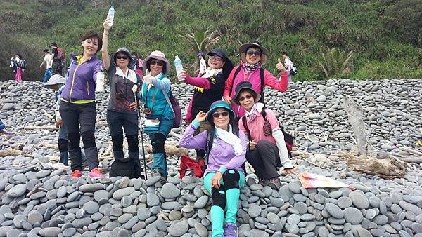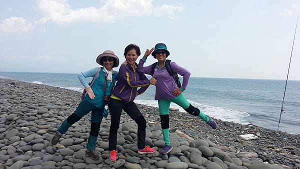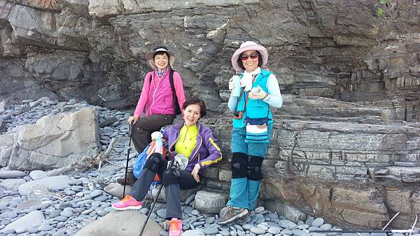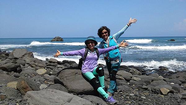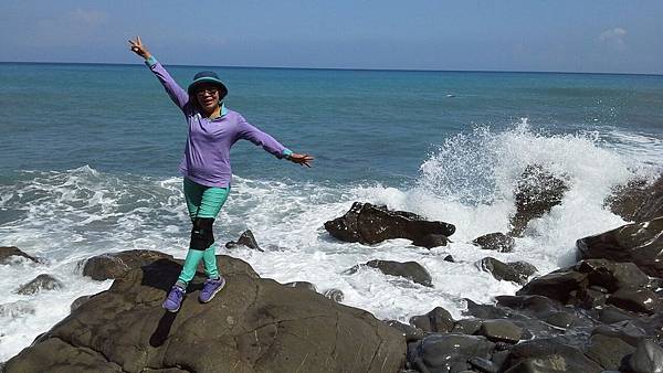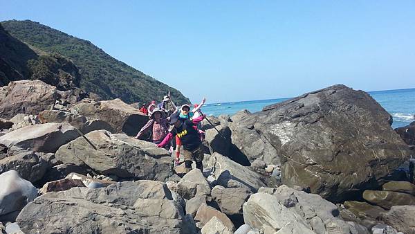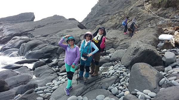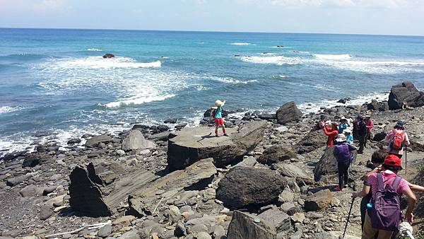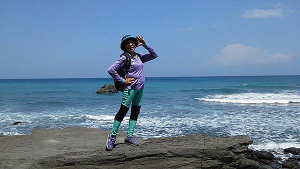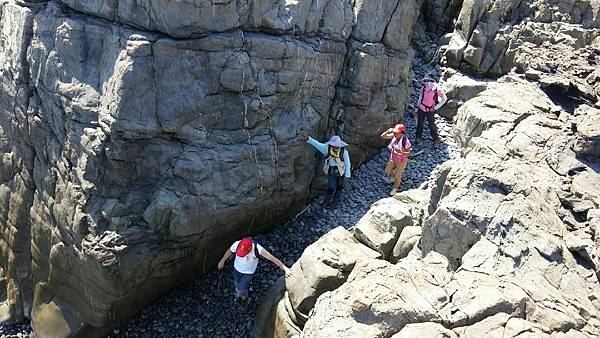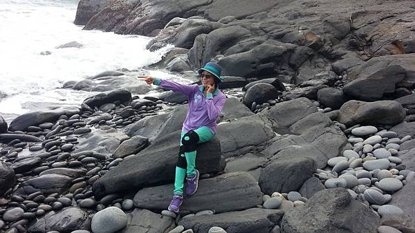 行走古道上,其中最有趣的一段是與海浪比賽速度,當經過一處險灘時,要趁浪頭退下時快速越過,否則下一個浪撲上來時就會因走避不及而成了落湯雞,此時只聽到隊友們驚叫連連~跑!快跑!快!!幸好都跑得比浪快,否則哪能被稱為勇腳咖呢。