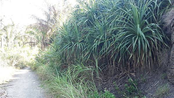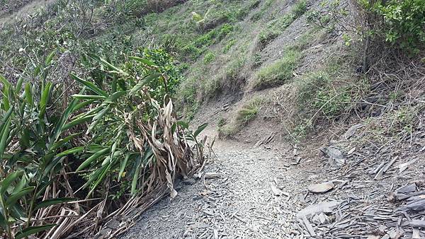 古道一開始是平緩好走的碎石路,右邊是海邊常見的林投樹和血藤之類的濱海植物,左邊是一望無際的太平洋,天連海,海連著天,景色美的出奇。行走約莫20分鐘後經過已經乾枯的塔瓦溪出海口,這條溪已乾枯許久,如今溪床只剩下石塊和野草了。沿途聆聽導覽員蘇老師講解古道的人文、歷史、植物和動物生態之外,不絕於耳的海浪聲和沿路的景觀確是美得令人著迷。