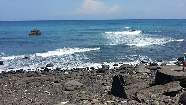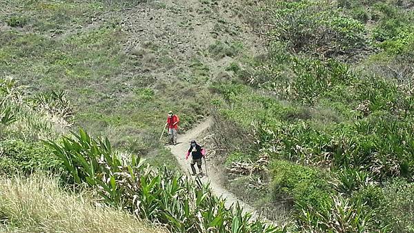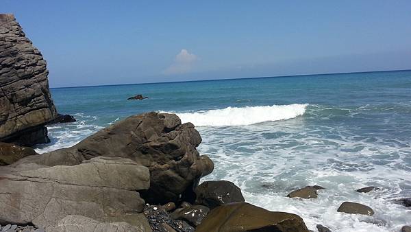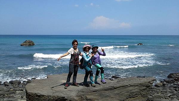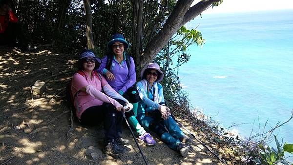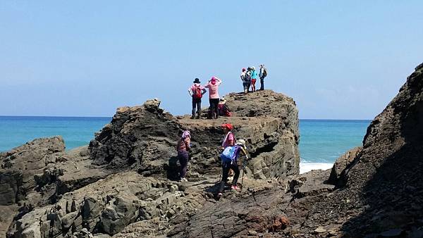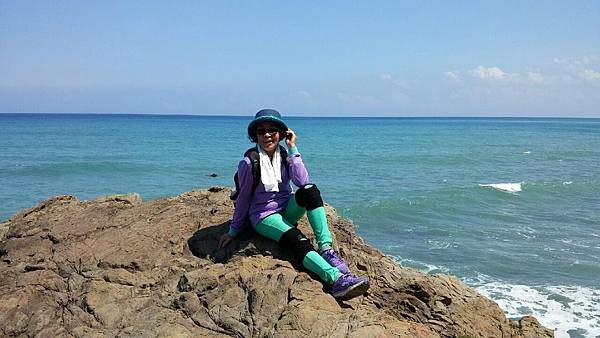 今天有一整天的時間可以在阿塱壹古道上留連,時間非常充裕,不必像其他團體來去匆匆,我們要充分利用每分每秒看清古道上的一切美好景物,一步一腳印,以免有遺珠之憾。走累了可靠坐在石壁上看藍寶石般的太平洋,聽海濤,吹海風,天南地北聊聊天,甚至閉目養神。走阿塱壹古道其實輕鬆自在,根本沒有想像中的困難,唯一的難處是行走海岸線上,沒有林蔭遮蔽,大太陽底下紫外線強,難敵又熱又曬的天氣,所以愛美的女生一定要做好防曬措施。