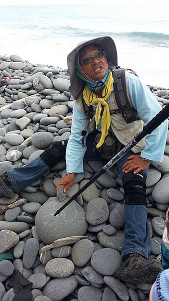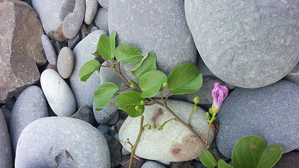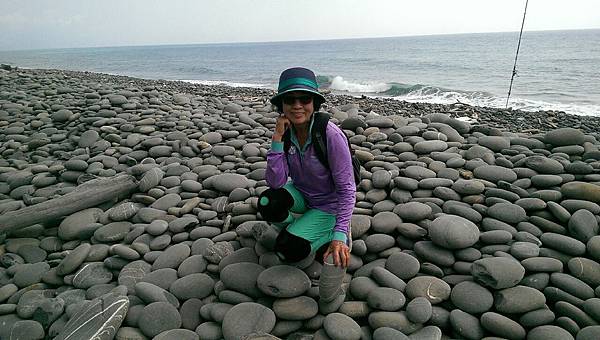繼續往前行,這段路山海緊臨、景色優美、生態豐富,已經漸漸進入海岸鵝卵石路段了。綿延的沙灘、堆疊無數的南田鵝卵石、至今全台只有阿塱壹古道這一段還保留有完整的南田石海岸了。被海浪推打成渾圓的鵝卵石有大有小,有的大如西瓜,渾圓飽滿,最小的鵝卵石如雞蛋般大小,各種花紋都有,每一顆都叫人愛不釋手,但是,不管妳有多喜歡它也不能將它帶走,因為阿塱壹古道已被屏東縣政府依文化資產保存法劃設「旭海觀音鼻自然保留區」,並實施遊客總量管制每日300人。縣政府重申,該保留區非一般遊樂區或登山路線,前往保留區民眾需依規定申請才可進入,否則將依法開罰,同時,若帶走或破壞保留區內的任何東西都屬違法行為。領隊說上星期就有一群民眾未經申請進入古道,結果每人開罰三萬元,還是依法申請後再進來吧!